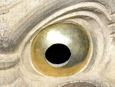 うまく目にかぶさると裏側から目穴を書き入れ |