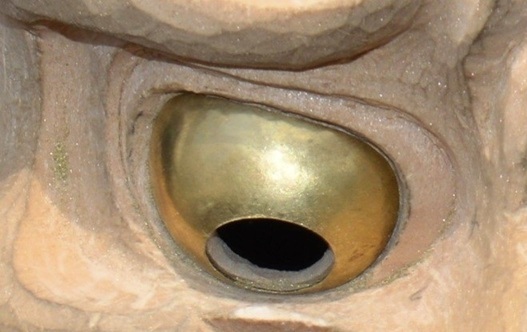 | 10tの 液膠 に30tの水を加え40ccで胡粉を溶く。 5回塗り#40のペーパーで磨く。 そのあとで目を接着した。 |